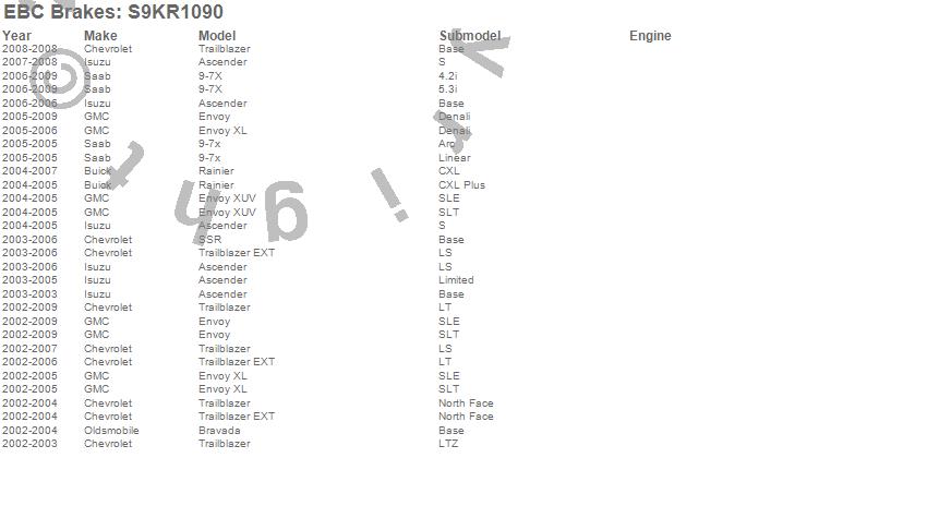 Below is an abreviated list of applications for the S9 Kits Yellowstuff and USR Rotors.