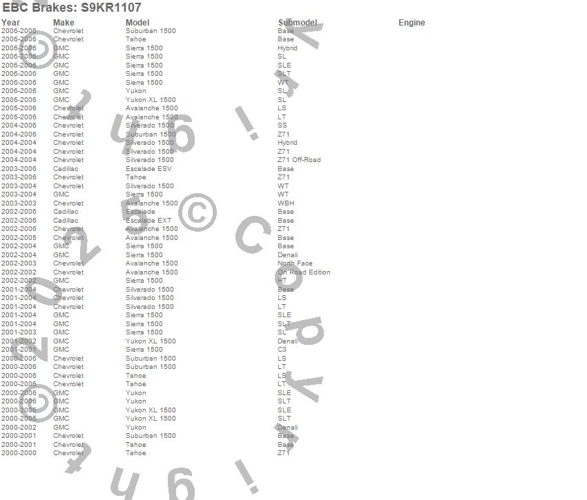 Below is an abreviated list of applications for the S9 Kits Yellowstuff and USR Rotors.