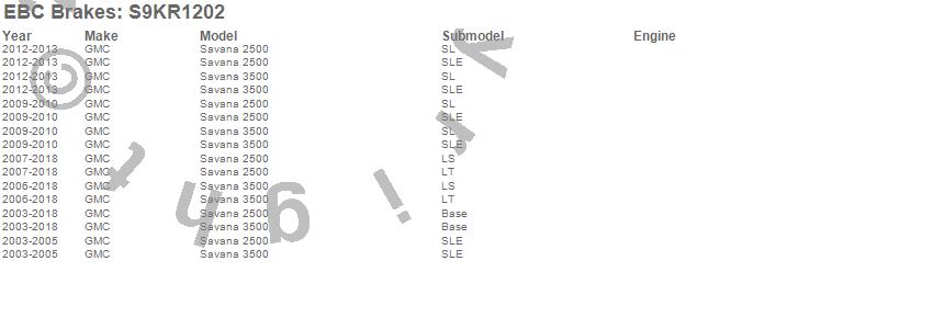 Below is an abreviated list of applications for the S9 Kits Yellowstuff and USR Rotors.