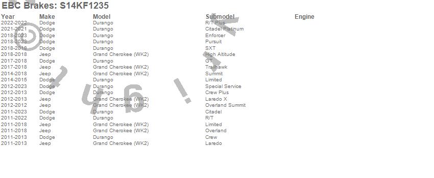 Below is an abreviated list of applications for the S14 Kits Greenstuff and RK Rotors SUV.