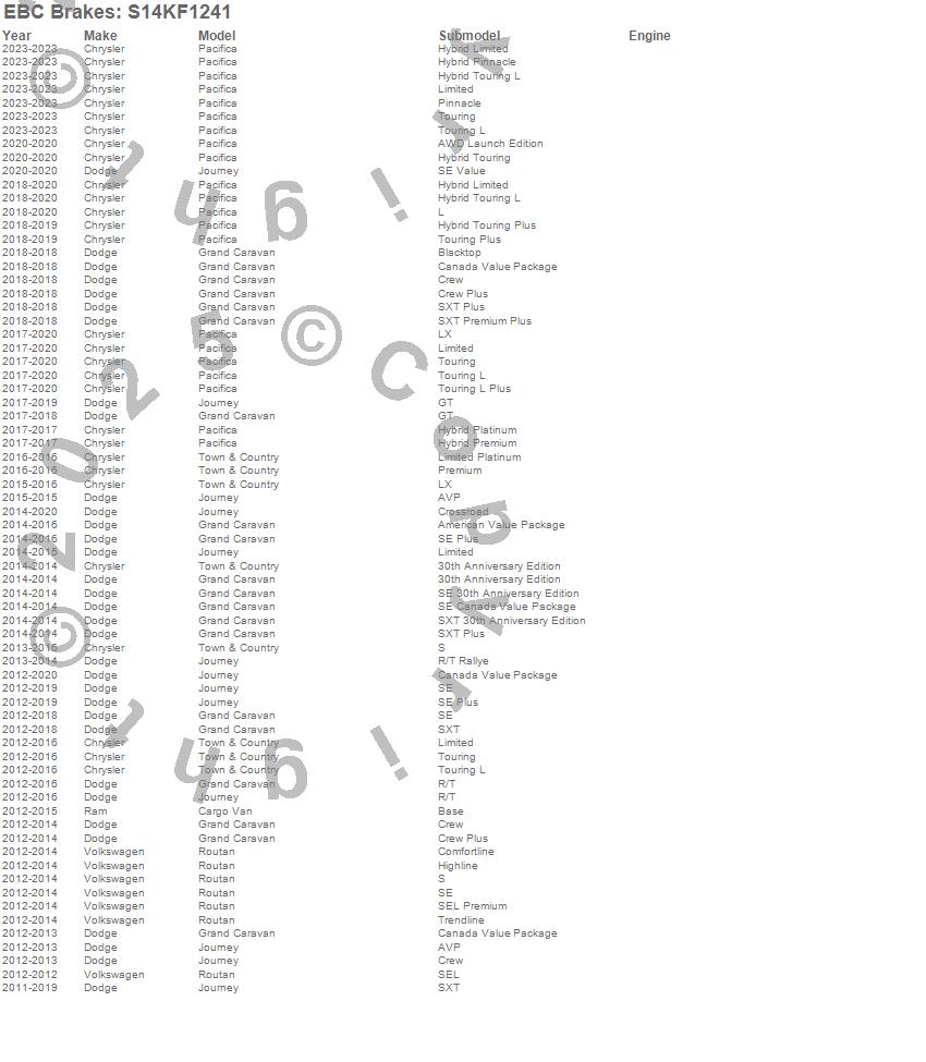 Below is an abreviated list of applications for the S14 Kits Greenstuff and RK Rotors SUV.