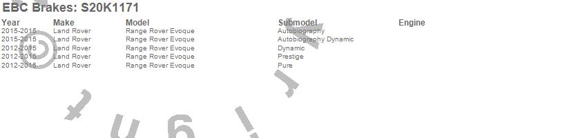 Below is an abreviated list of applications for the S20 Kits Ultimax and Plain Rotors.