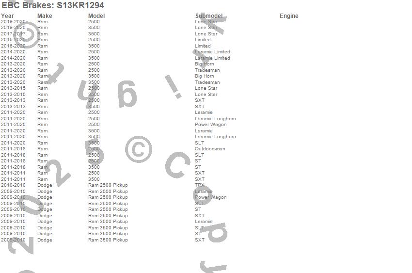 Below is an abreviated list of applications for the S13 Kits Yellowstuff and RK Rotors.