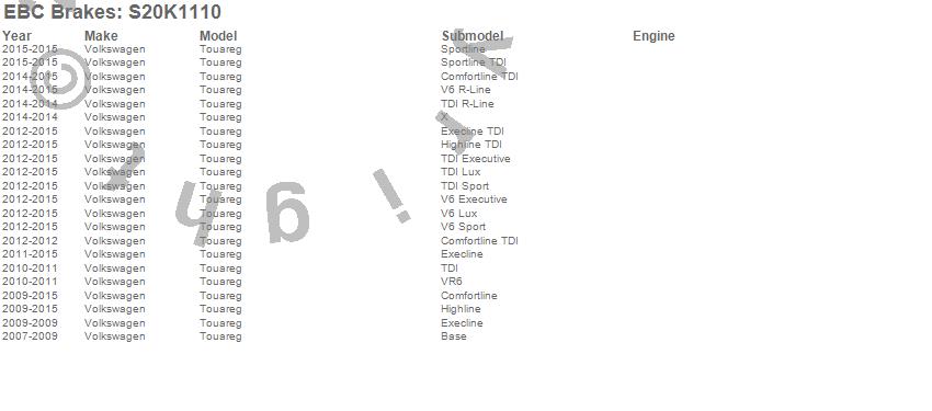 Below is an abreviated list of applications for the S20 Kits Ultimax and Plain Rotors.