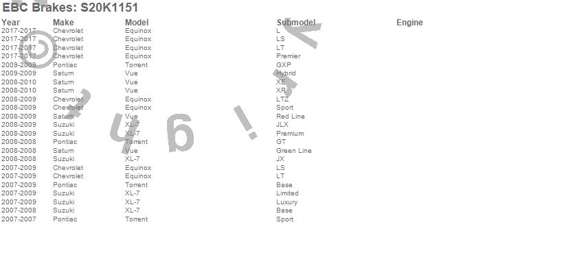 Below is an abreviated list of applications for the S20 Kits Ultimax and Plain Rotors.