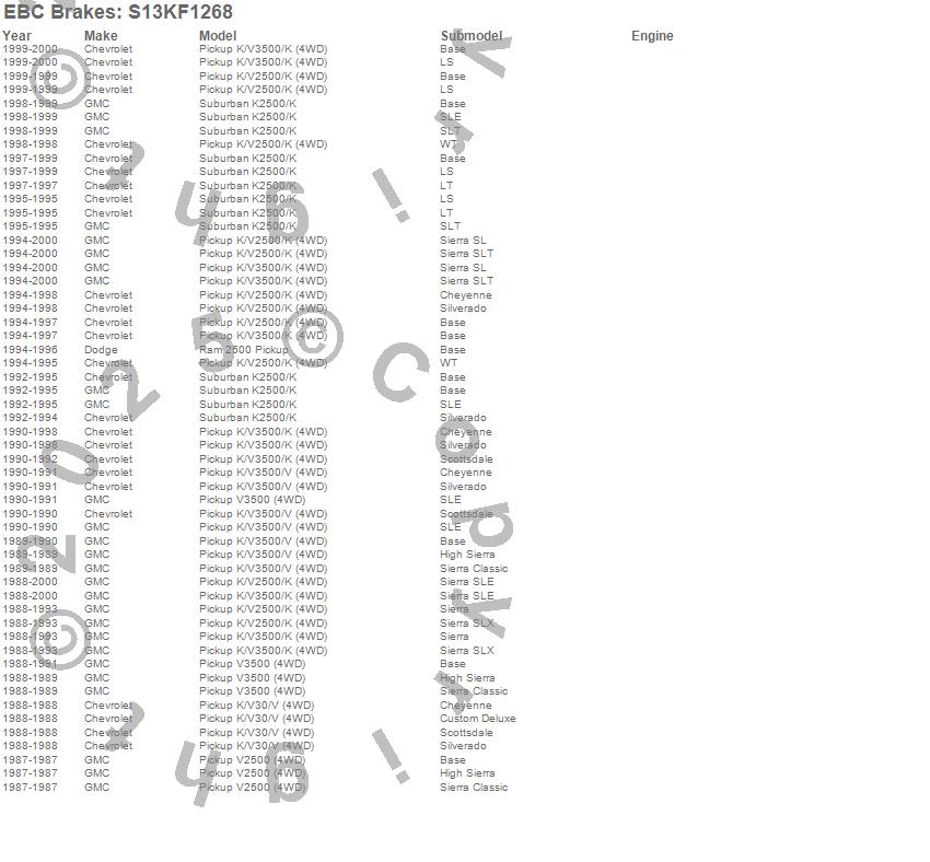 Below is an abreviated list of applications for the S13 Kits Yellowstuff and RK Rotors.
