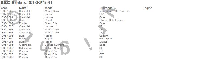 Below is an abreviated list of applications for the S13 Kits Yellowstuff and RK Rotors.