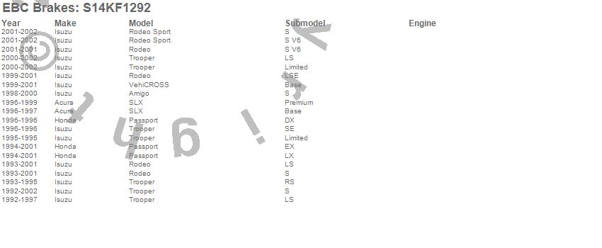 Below is an abreviated list of applications for the S14 Kits Greenstuff and RK Rotors SUV.