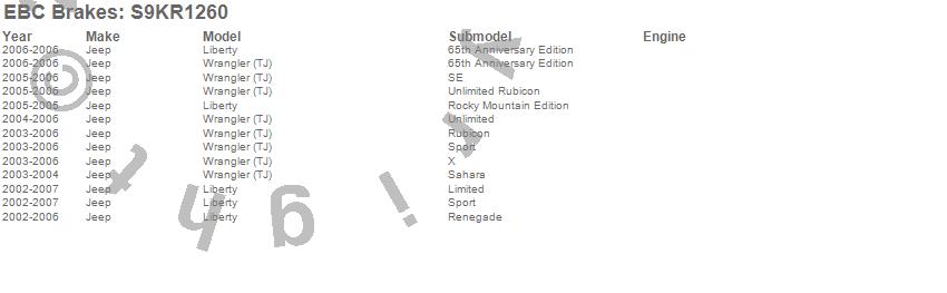 Below is an abreviated list of applications for the S9 Kits Yellowstuff and USR Rotors.