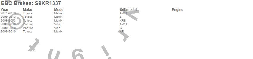Below is an abreviated list of applications for the S9 Kits Yellowstuff and USR Rotors.