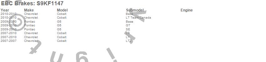 Below is an abreviated list of applications for the S9 Kits Yellowstuff and USR Rotors.