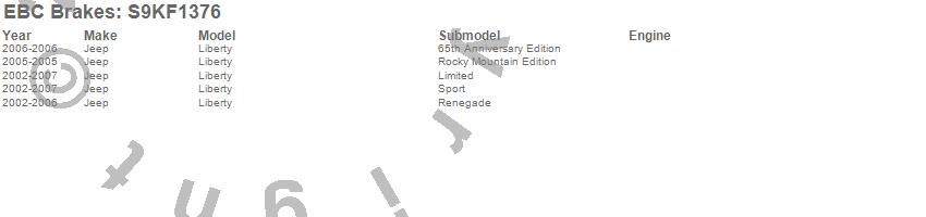 Below is an abreviated list of applications for the S9 Kits Yellowstuff and USR Rotors.