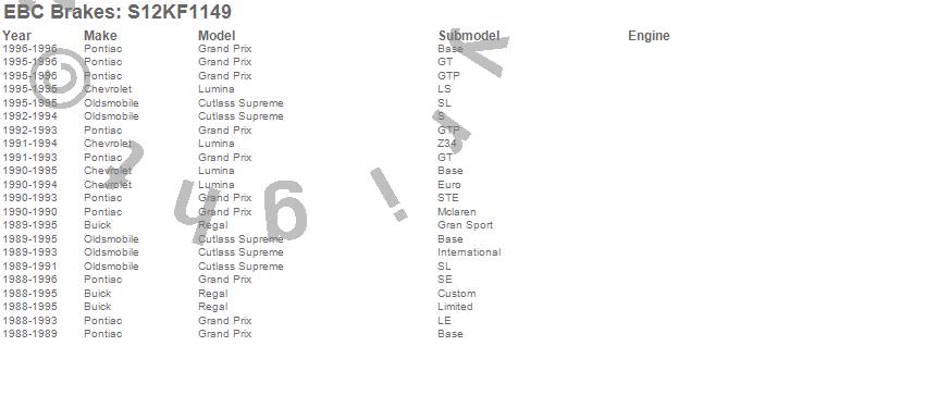 Below is an abreviated list of applications for the S12 Kits Redstuff and RK Rotors.