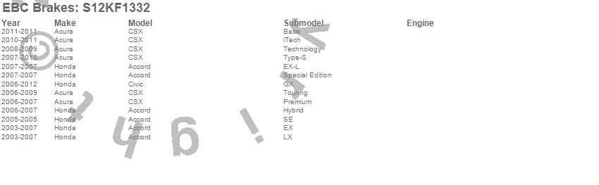Below is an abreviated list of applications for the S12 Kits Redstuff and RK Rotors.