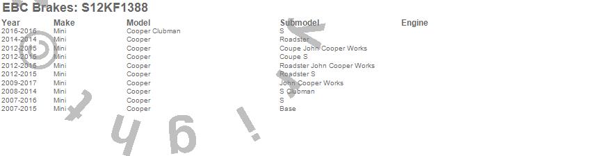 Below is an abreviated list of applications for the S12 Kits Redstuff and RK Rotors.