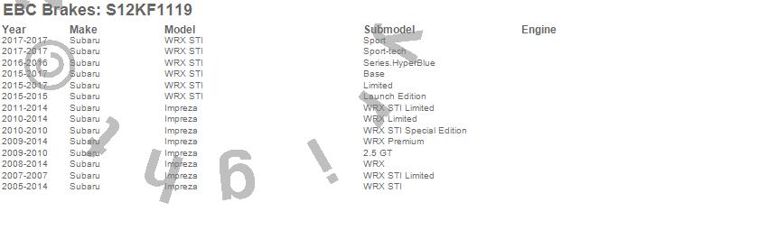 Below is an abreviated list of applications for the S12 Kits Redstuff and RK Rotors.