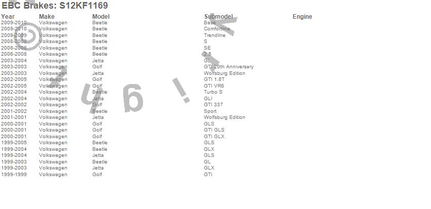 Below is an abreviated list of applications for the S12 Kits Redstuff and RK Rotors.