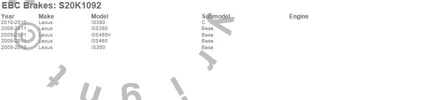 Below is an abreviated list of applications for the S20 Kits Ultimax and Plain Rotors.