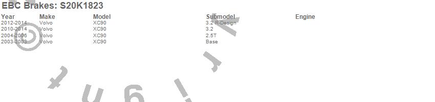 Below is an abreviated list of applications for the S20 Kits Ultimax and Plain Rotors.