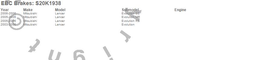 Below is an abreviated list of applications for the S20 Kits Ultimax and Plain Rotors.