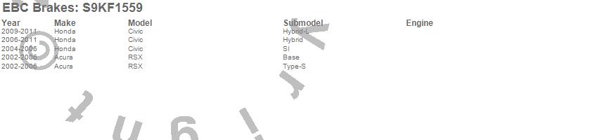 Below is an abreviated list of applications for the S9 Kits Yellowstuff and USR Rotors.