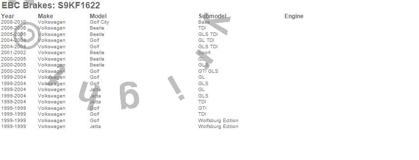 Below is an abreviated list of applications for the S9 Kits Yellowstuff and USR Rotors.