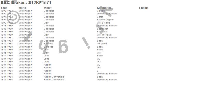 Below is an abreviated list of applications for the S12 Kits Redstuff and RK Rotors.