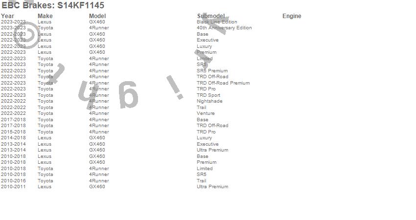 Below is an abreviated list of applications for the S14 Kits Greenstuff and RK Rotors SUV.