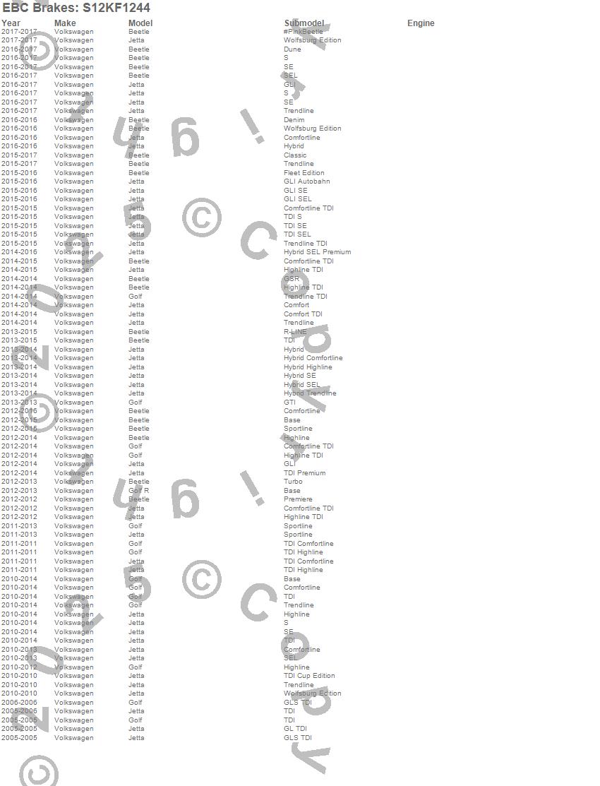 Below is an abreviated list of applications for the S12 Kits Redstuff and RK Rotors.