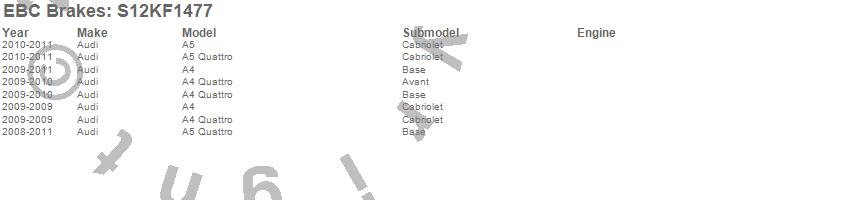 Below is an abreviated list of applications for the S12 Kits Redstuff and RK Rotors.