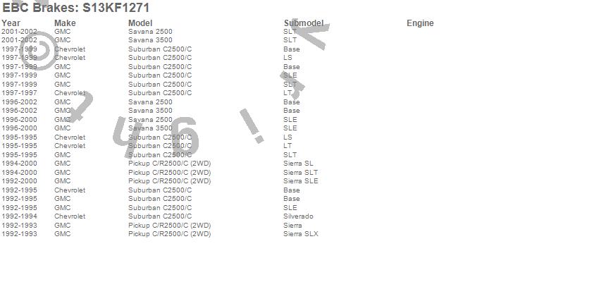 Below is an abreviated list of applications for the S13 Kits Yellowstuff and RK Rotors.