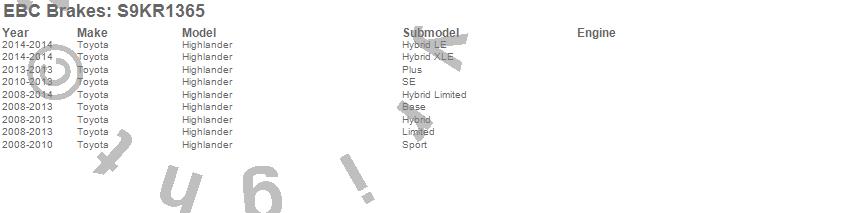 Below is an abreviated list of applications for the S9 Kits Yellowstuff and USR Rotors.