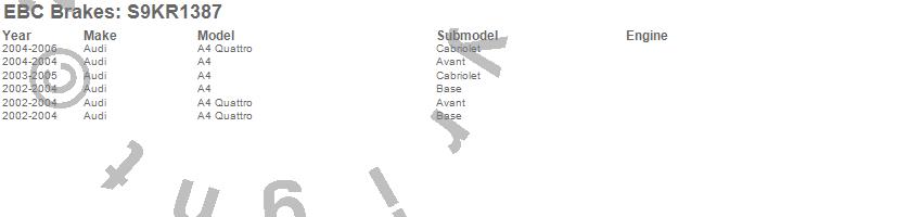 Below is an abreviated list of applications for the S9 Kits Yellowstuff and USR Rotors.