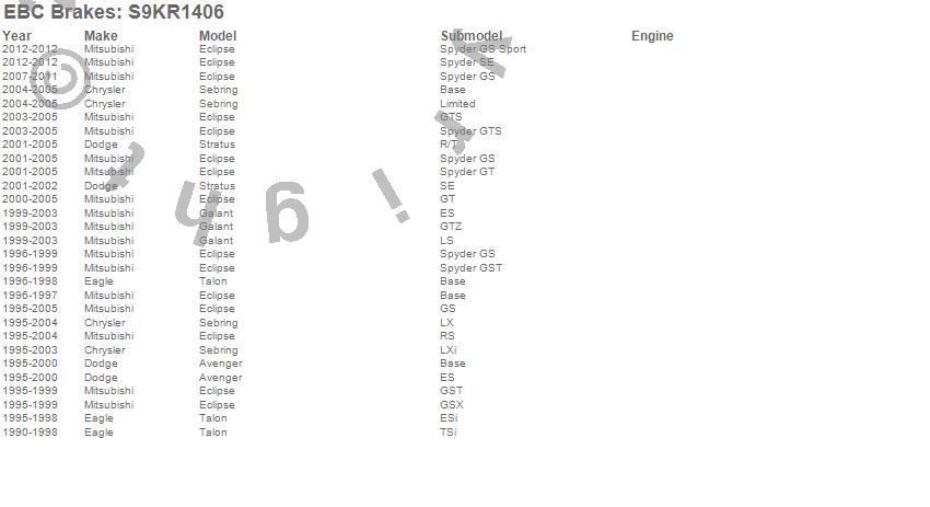 Below is an abreviated list of applications for the S9 Kits Yellowstuff and USR Rotors.