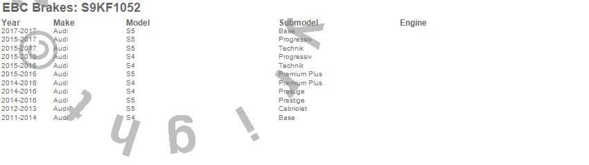 Below is an abreviated list of applications for the S9 Kits Yellowstuff and USR Rotors.