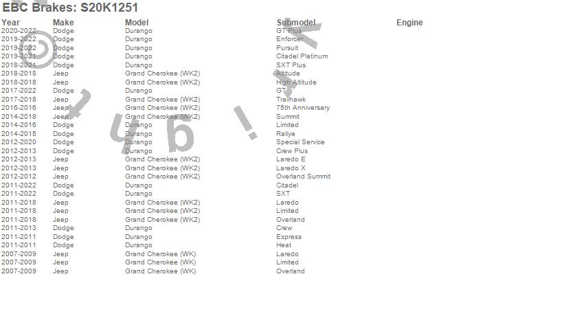 Below is an abreviated list of applications for the S20 Kits Ultimax and Plain Rotors.