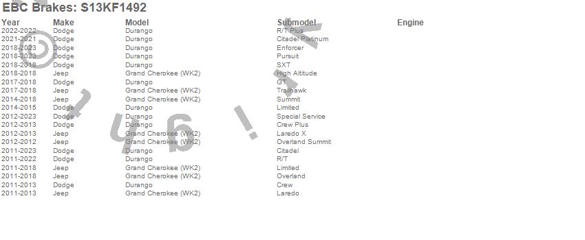 Below is an abreviated list of applications for the S13 Kits Yellowstuff and RK Rotors.