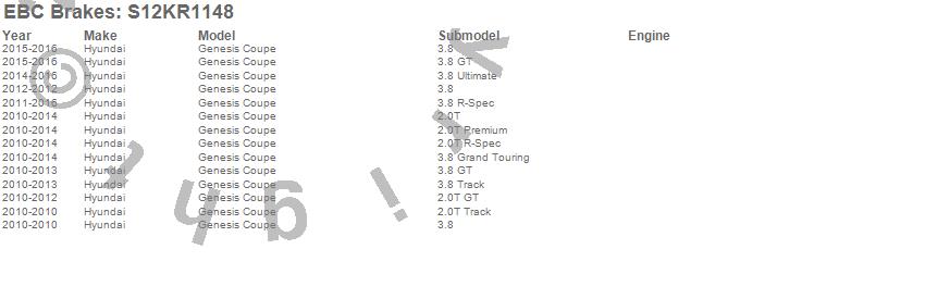 Below is an abreviated list of applications for the S12 Kits Redstuff and RK Rotors.