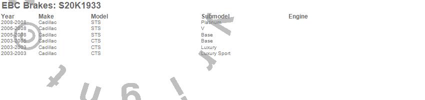 Below is an abreviated list of applications for the S20 Kits Ultimax and Plain Rotors.