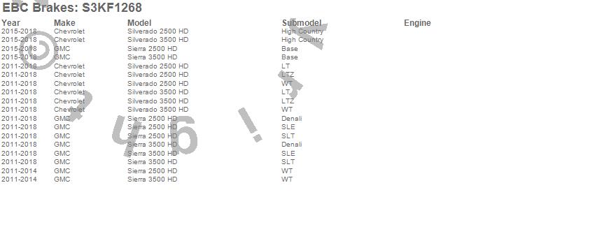 Below is an abreviated list of applications for the S3 Kits Greenstuff 6000 and GD Rotors Truck and SUV.