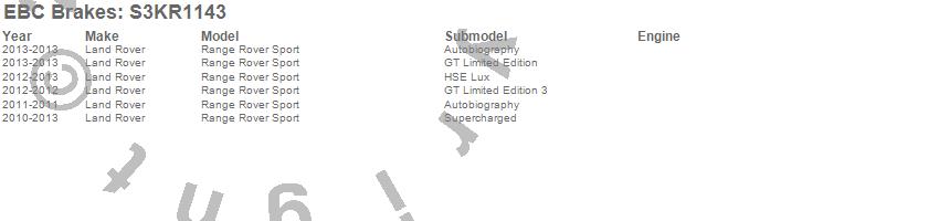Below is an abreviated list of applications for the S3 Kits Greenstuff 6000 and GD Rotors Truck and SUV.
