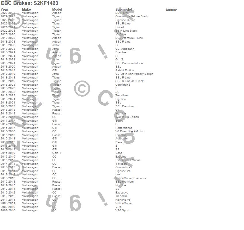 Below is an abreviated list of applications for the S2 Kits Greentuff 2000 and USR Rotors.
