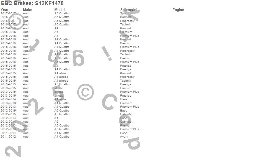 Below is an abreviated list of applications for the S12 Kits Redstuff and RK Rotors.