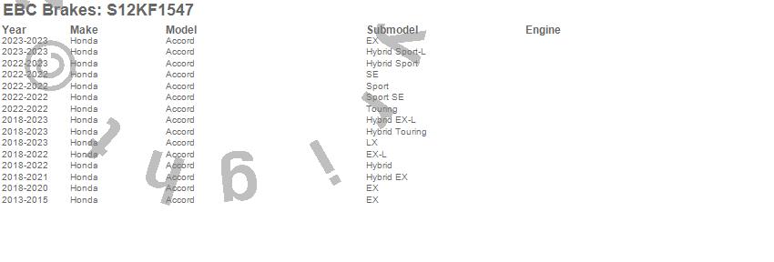 Below is an abreviated list of applications for the S12 Kits Redstuff and RK Rotors.