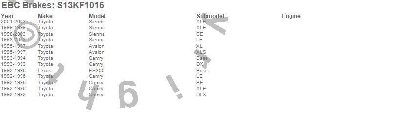 Below is an abreviated list of applications for the S13 Kits Yellowstuff and RK Rotors.
