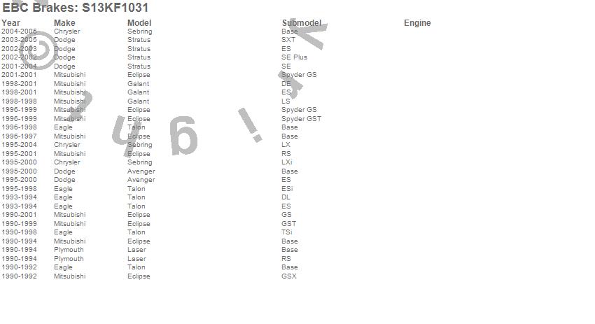 Below is an abreviated list of applications for the S13 Kits Yellowstuff and RK Rotors.