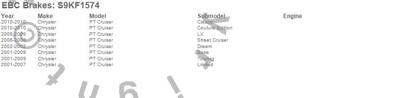 Below is an abreviated list of applications for the S9 Kits Yellowstuff and USR Rotors.