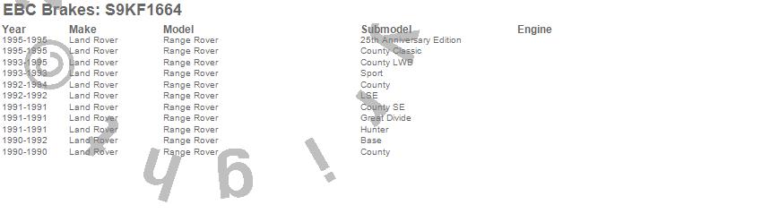 Below is an abreviated list of applications for the S9 Kits Yellowstuff and USR Rotors.
