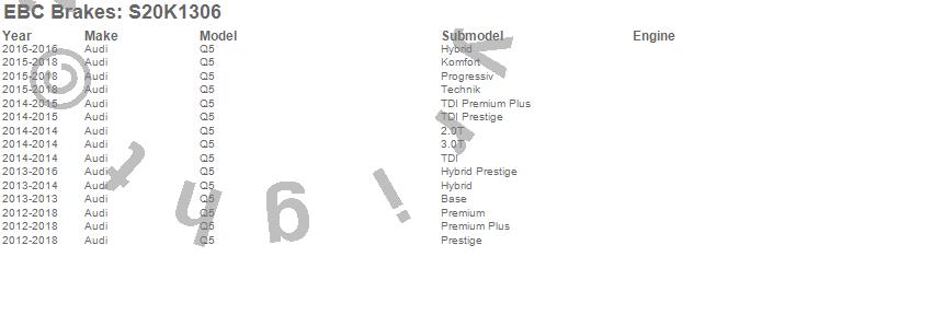 Below is an abreviated list of applications for the S20 Kits Ultimax and Plain Rotors.