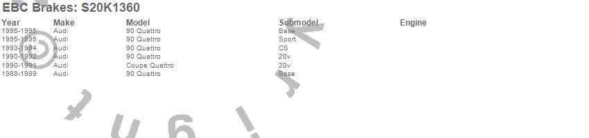 Below is an abreviated list of applications for the S20 Kits Ultimax and Plain Rotors.